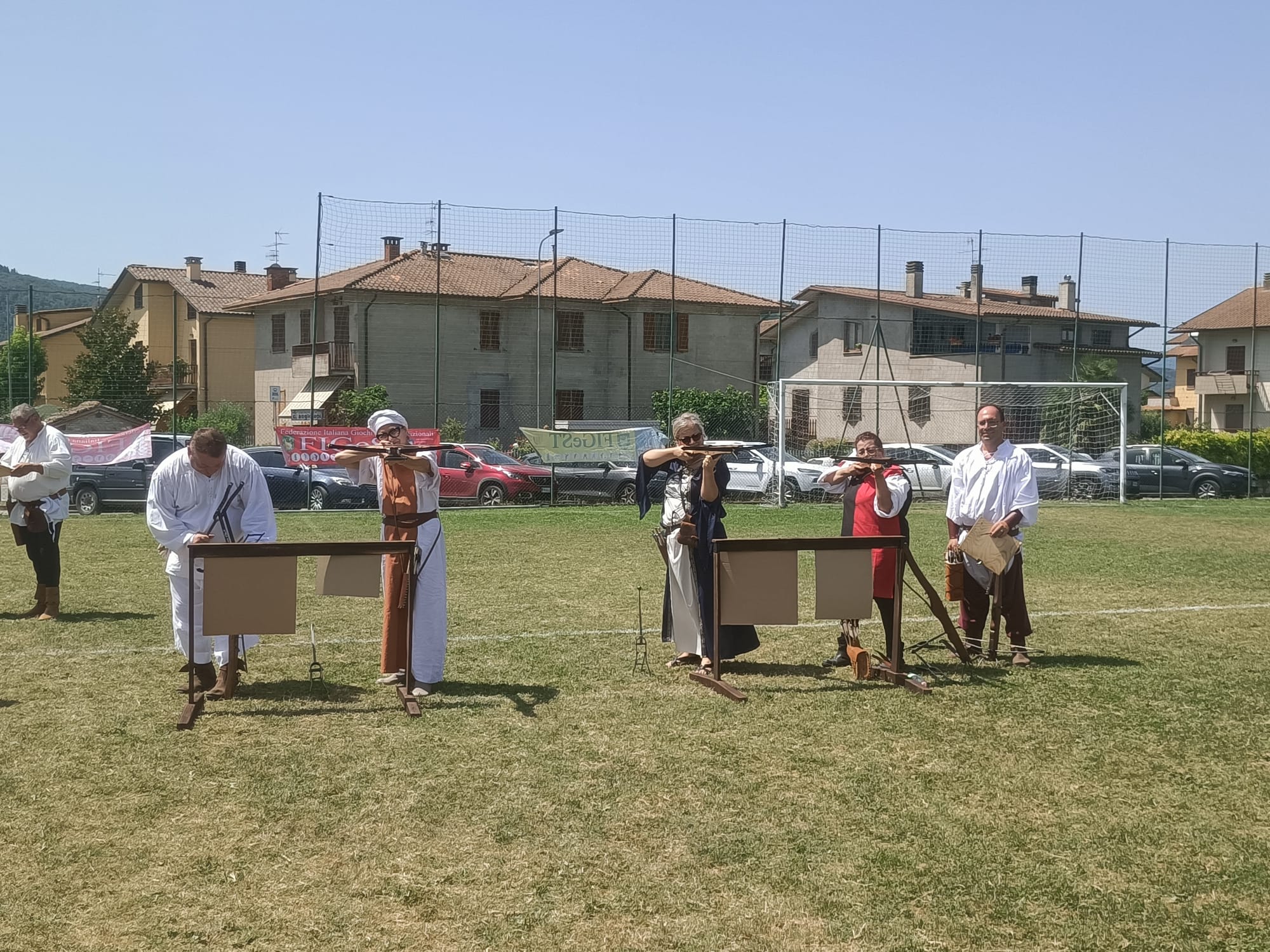 Nella rievocativa cornice della Festa della Battitura del grano, come preannunciato Domenica 16 Luglio in Loc. Piosina di Città di Castello (PG) si è svolta la prima giornata della nuova edizione del Campionato Italiano di Tiro con la Balestra storica.