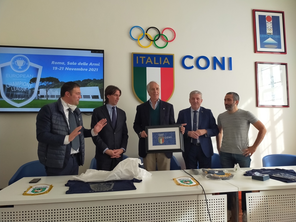 La cerimonia di presentazione dell’European Champions League di calcio balilla ha visto la partecipazione del presidente nazionale della FIGeST, Enzo Casadidio, del presidente del Coni, Giovanni Malagò, del segretario del Coni nazionale, Carlo Mornati, del presidente della International Table Soccer Federation, Farid Lounas, del vice presidente, Klaus Gottesleben, e del presidente del settore calcio balilla della FIGeST, Nicola Colacicco. Presente anche l’assessore allo Sport, Turismo e grandi eventi del Comune di Roma, Alessandro Onorato.