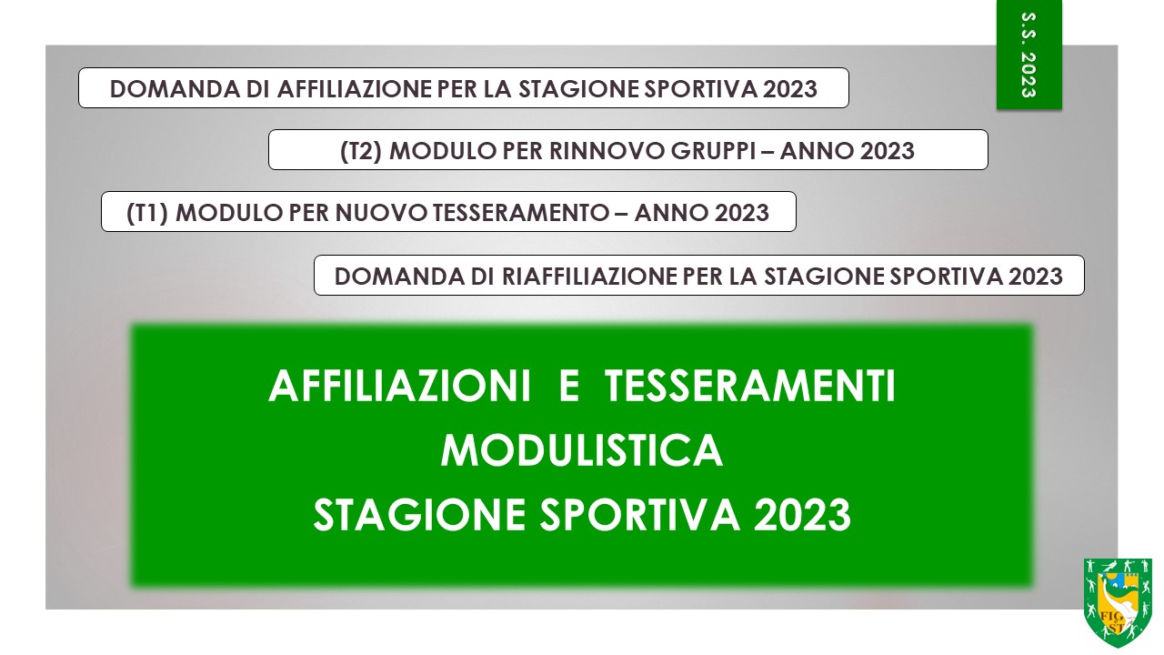 Alle Affiliate ed ai tesserati FIGeST, a tutti gli interessati ad entrare nel mondo FIGeST, è ufficialmente aperta la campagna di affiliazione e tesseramento per la stagione sportiva 2023 che avrà inizio il 1° gennaio 2022. La scadenza rinnovi è fissata al 28 Febbraio 2023, invitiamo a ris...
